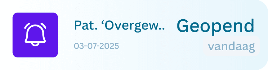 Herinner patiënten en zorgverleners automatisch wanneer actie nodig is, zodat uitval wordt verminderd en vertragingen worden voorkomen.